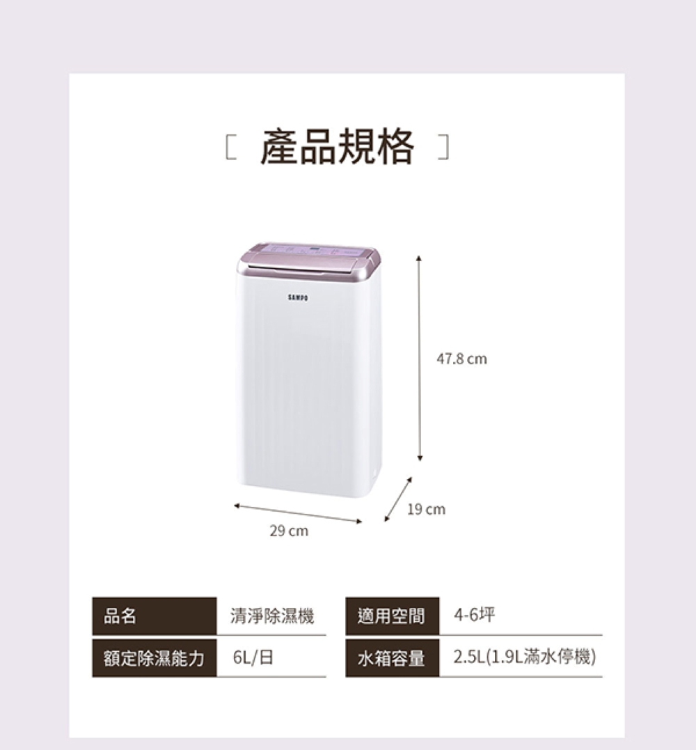 SAMPO 聲寶 6L微電腦除濕機(搭配甲殼素濾網)AD-WB112T