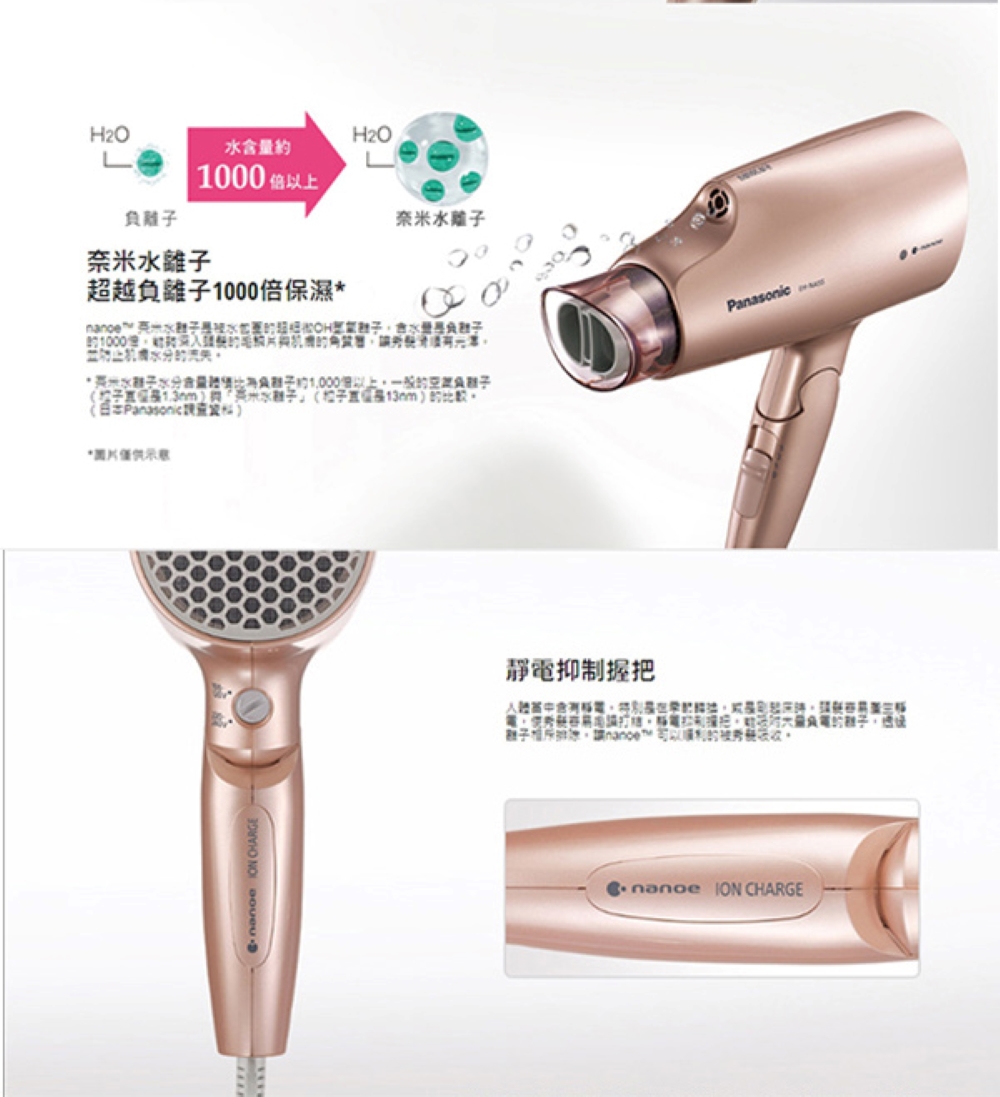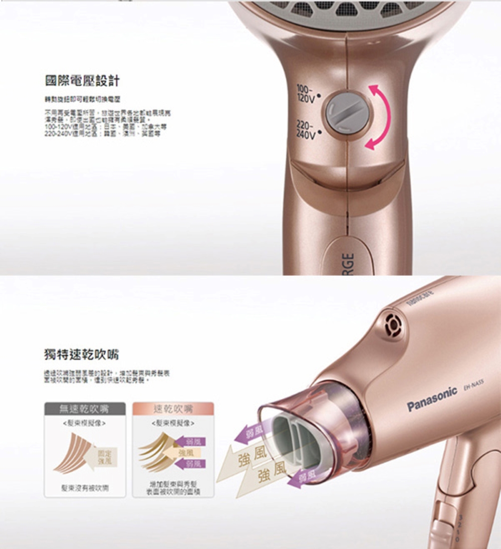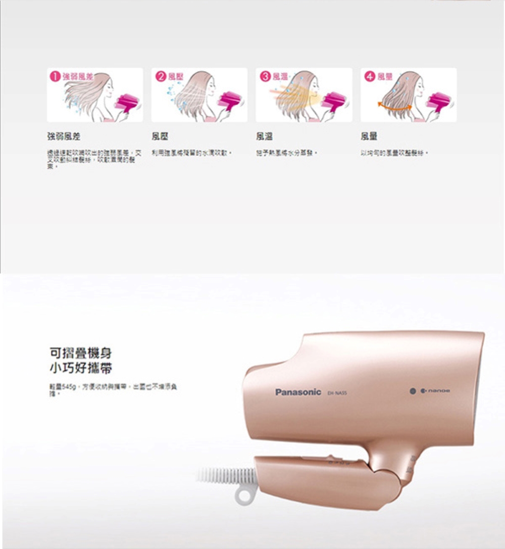 Panasonic 國際牌奈米水離子3段溫控國際電壓折疊式吹風機 EH-NA55