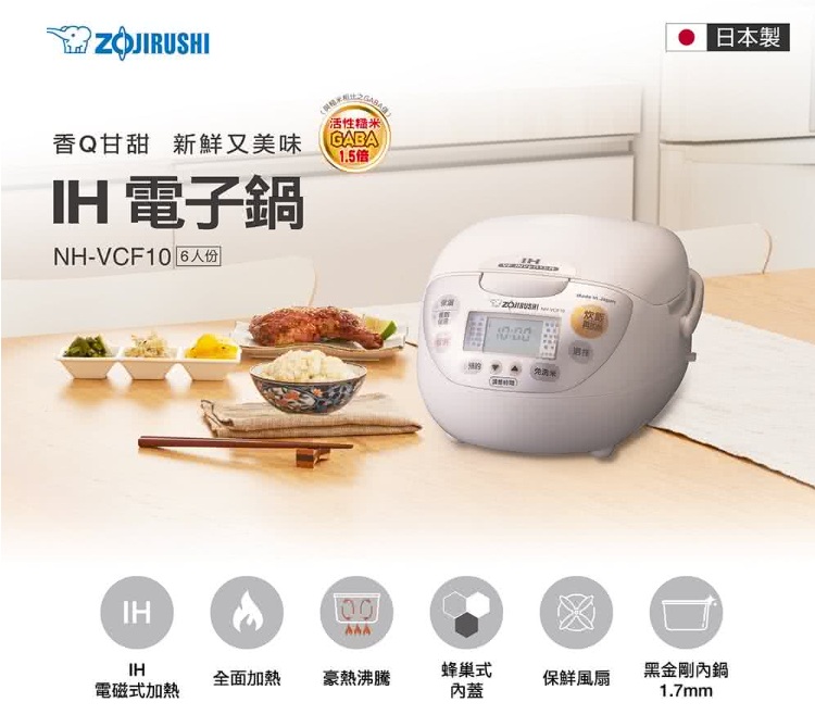 ZOJIRUSHI 象印 日製6人份豪熱沸騰IH微電腦電子鍋 NH-VCF10 -