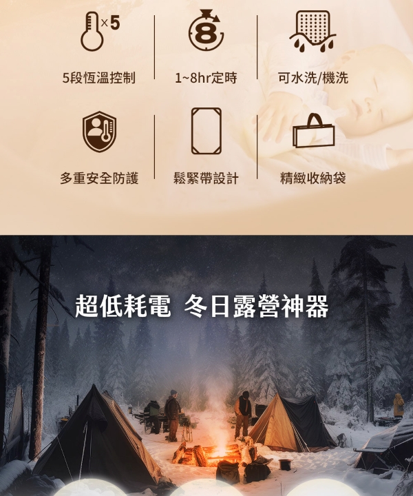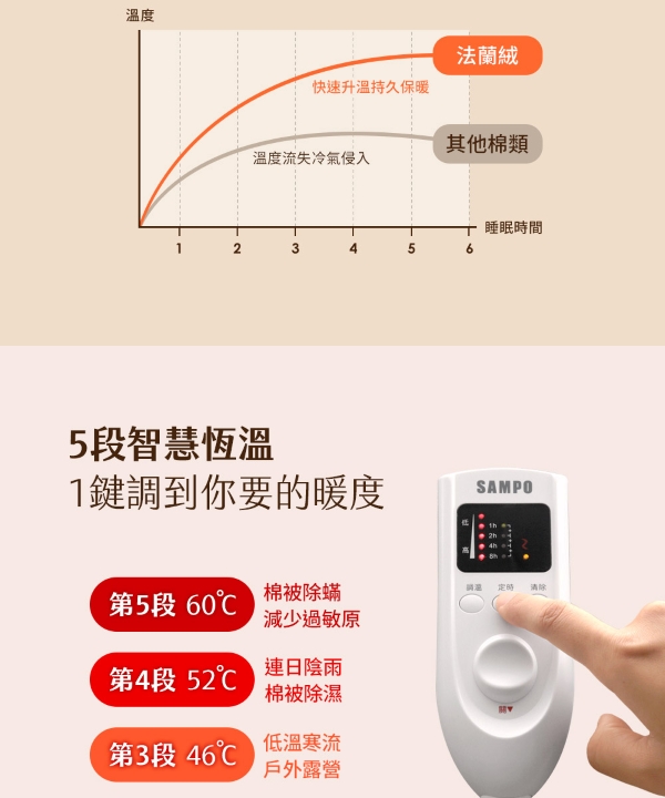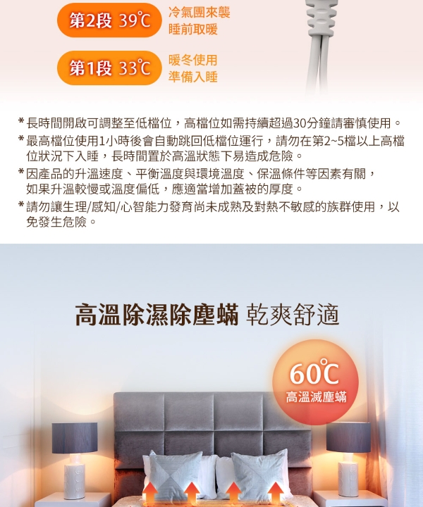5段恆溫設定  33° ~60°  適溫設定好入睡