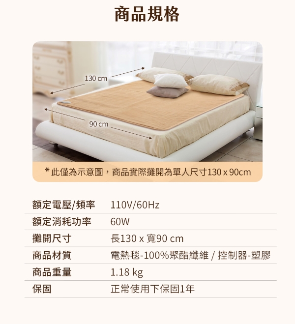 SAMPO 聲寶 恆溫定時單人電熱毯HY-JA06S -
