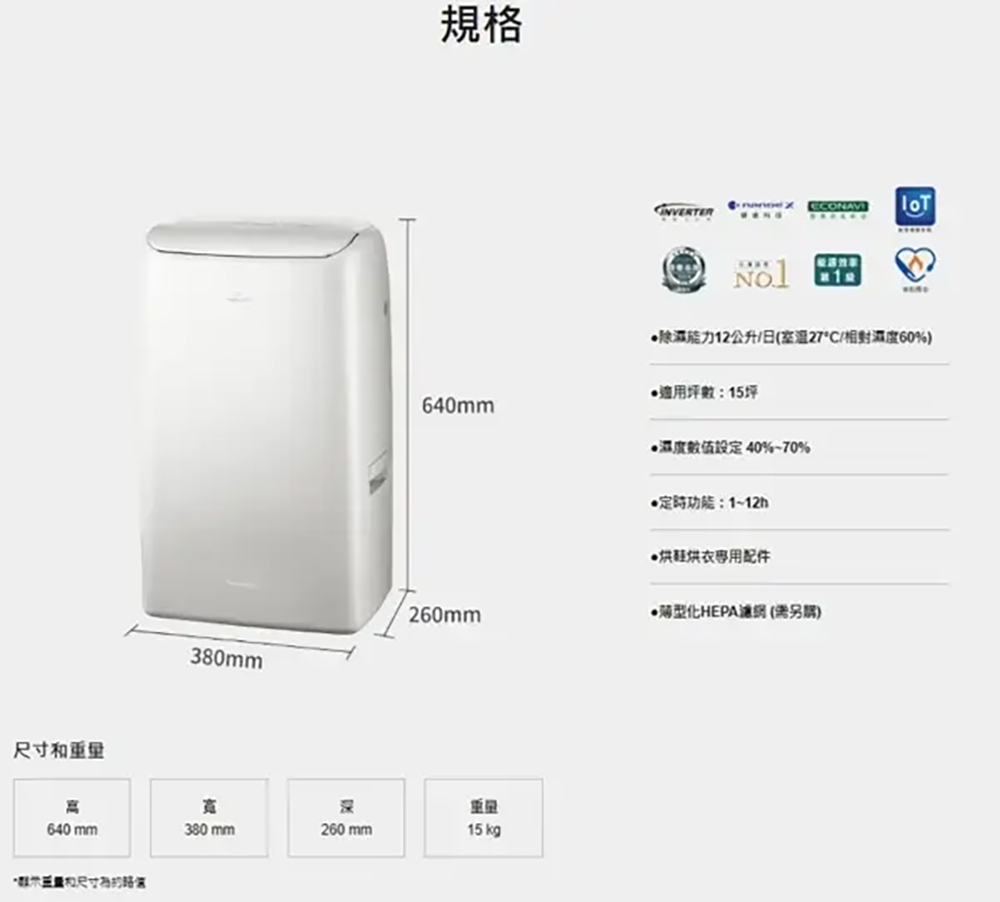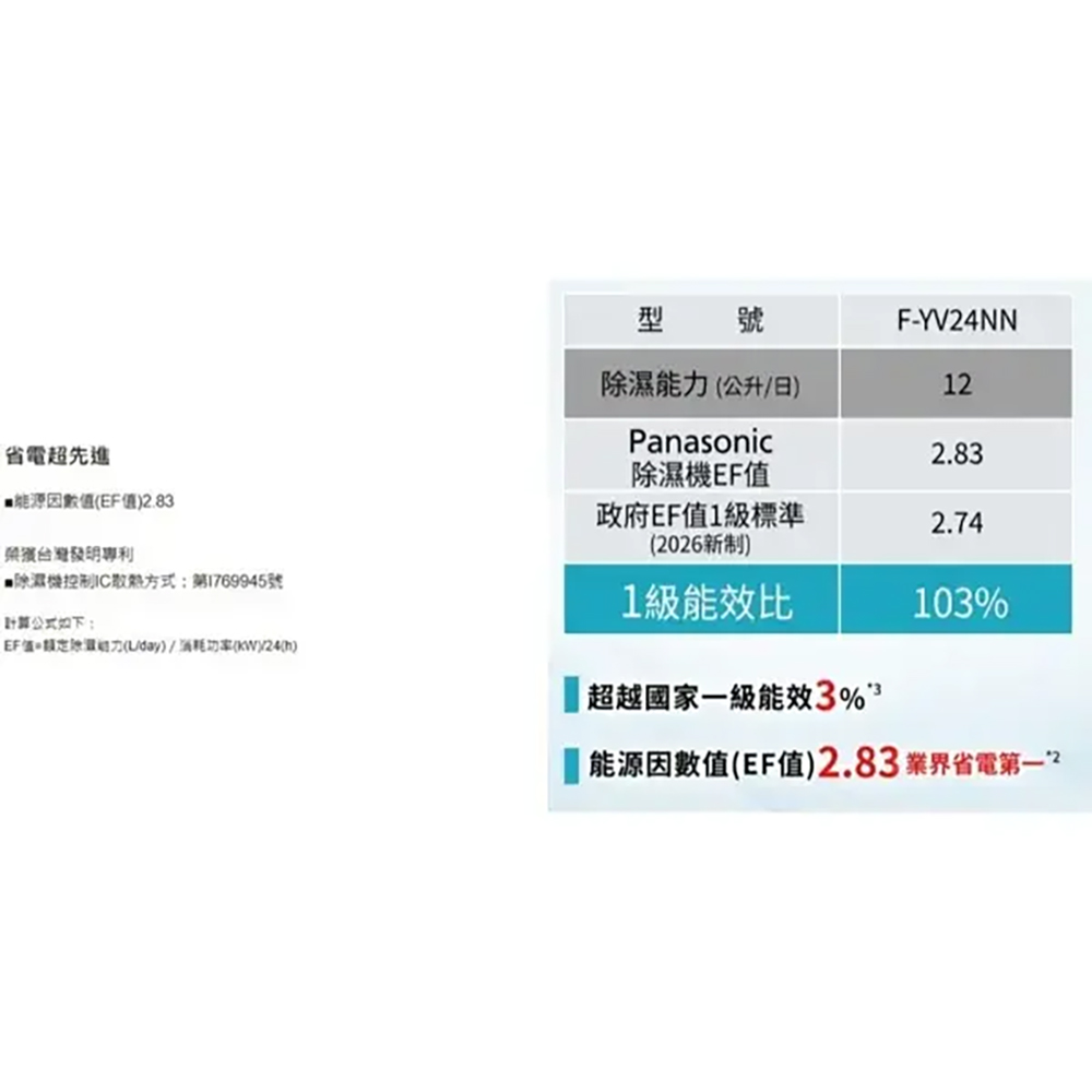 Panasonic 國際牌 12L nanoe清淨二合一雙變頻微電腦除濕機 F-YV24NN