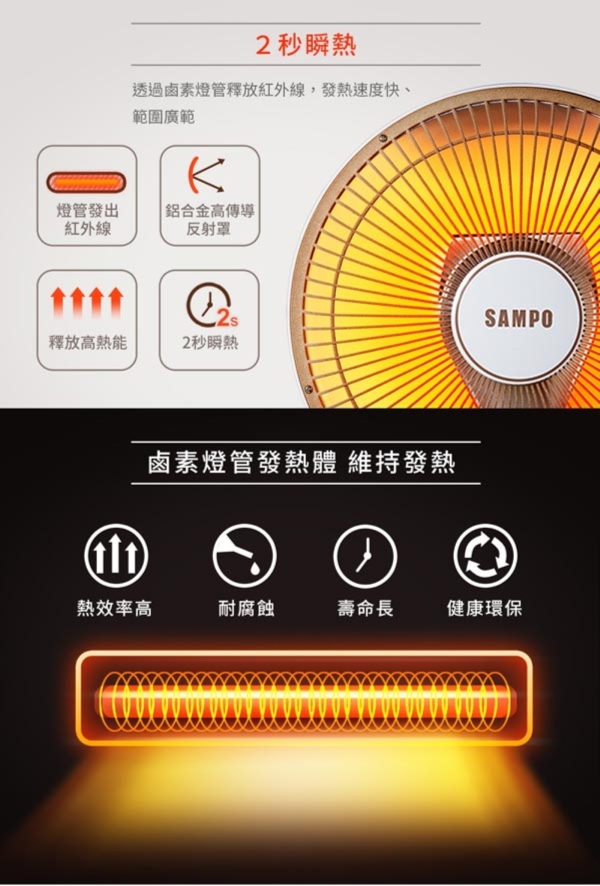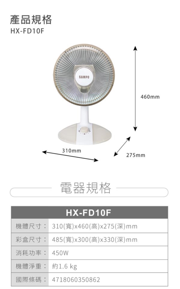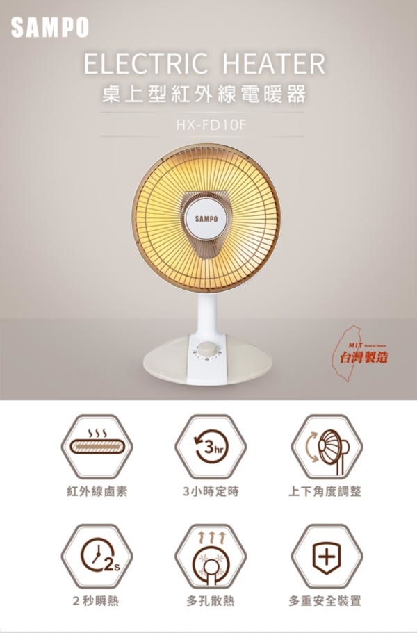 SAMPO 聲寶 桌上型紅外線電暖器 HX-FD10F
