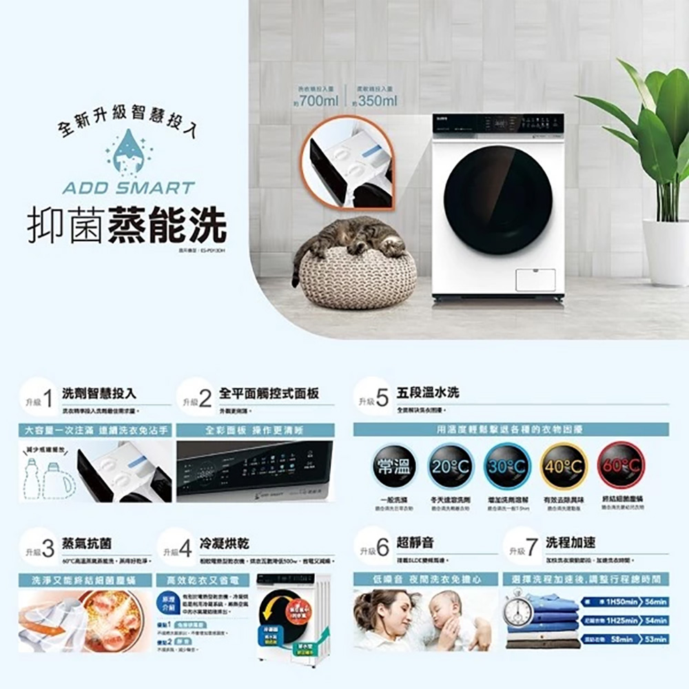 SAMPO 聲寶 13/8kg 變頻滾筒洗脫烘蒸洗衣機 ES-PD13DH -含基本安裝+舊機回收 贈7-11商品卡4000元