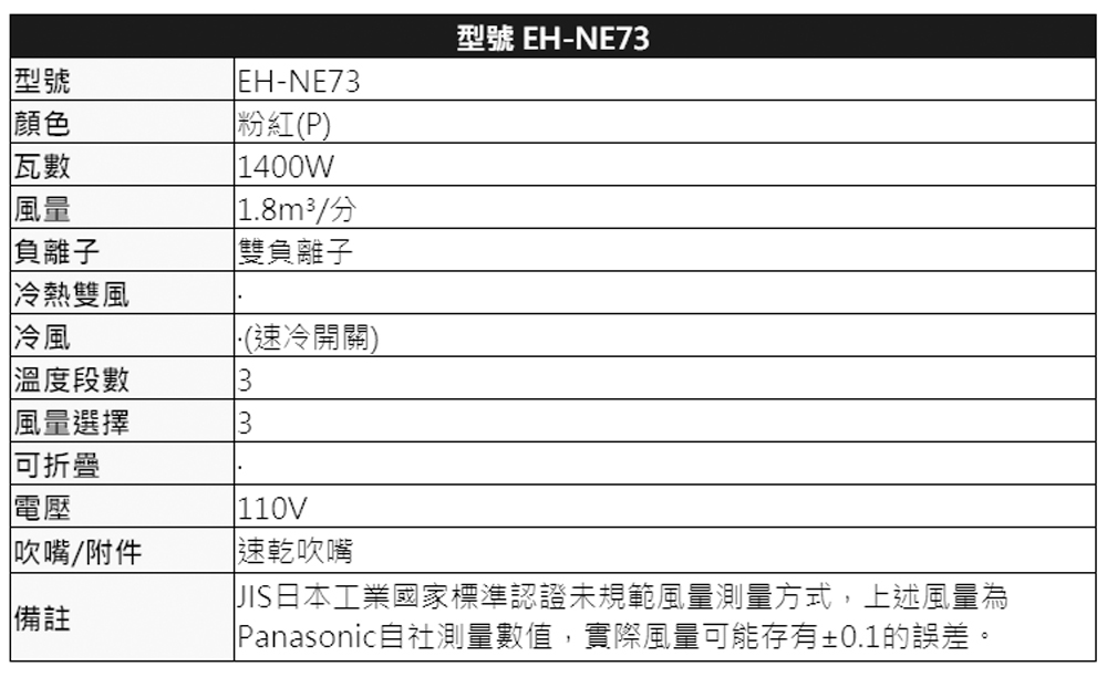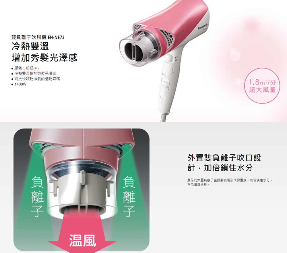 Panasonic 國際牌雙負離子吹風機EH-NE73