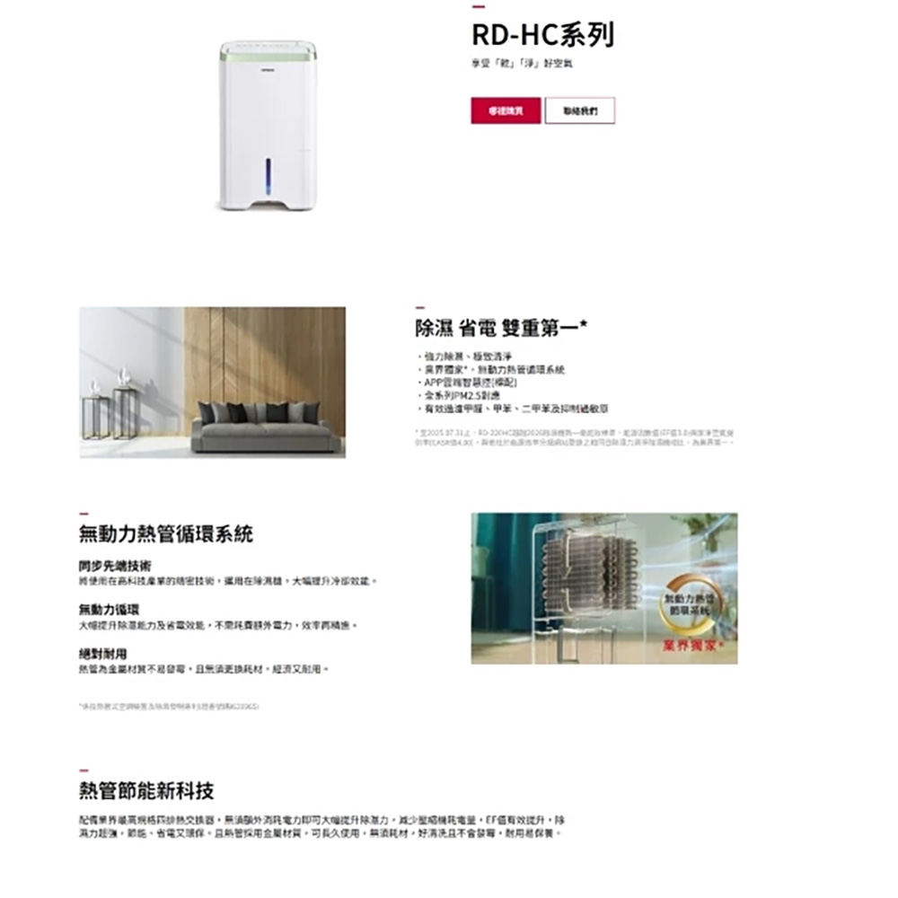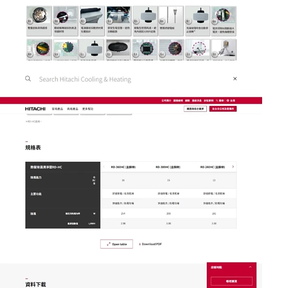 Hitachi 日立 18L 熱管清淨型除濕機 RD-360HC -