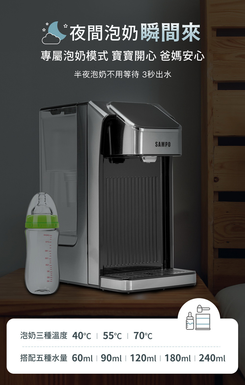 媽咪泡奶神器的神搭配-奶粉最佳沖泡溫度40℃、55℃、70℃、-奶瓶最適容量60ml、90ml、120ml、180ml、240ml