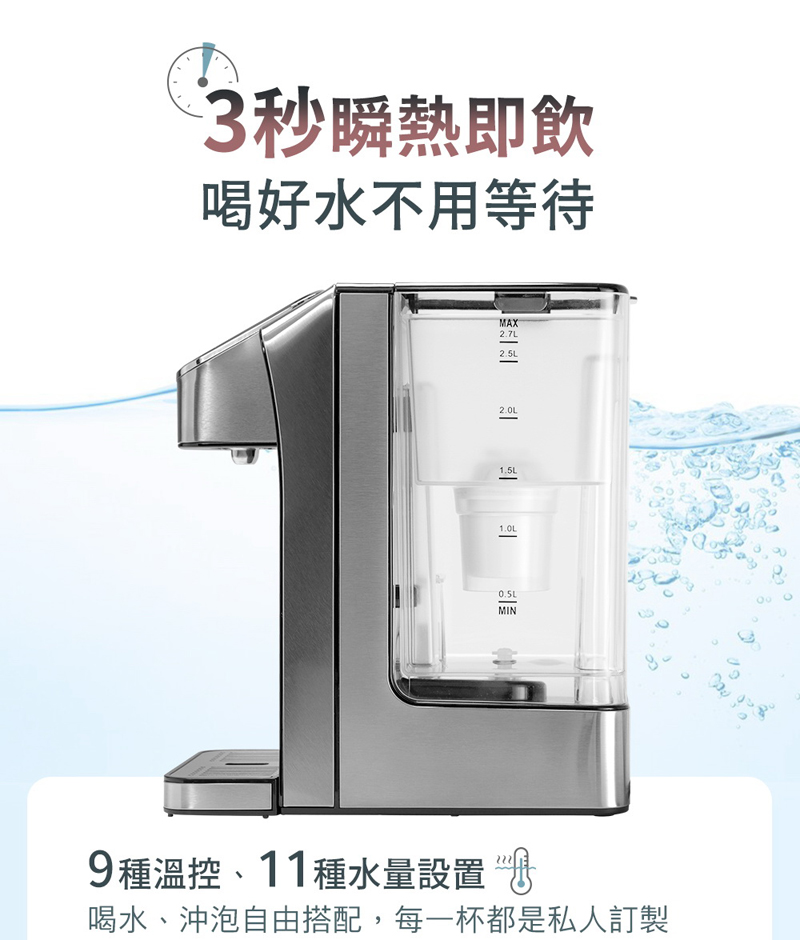 9種常用溫度,11種常用水量,喝水自由配,盡情享用不必等待