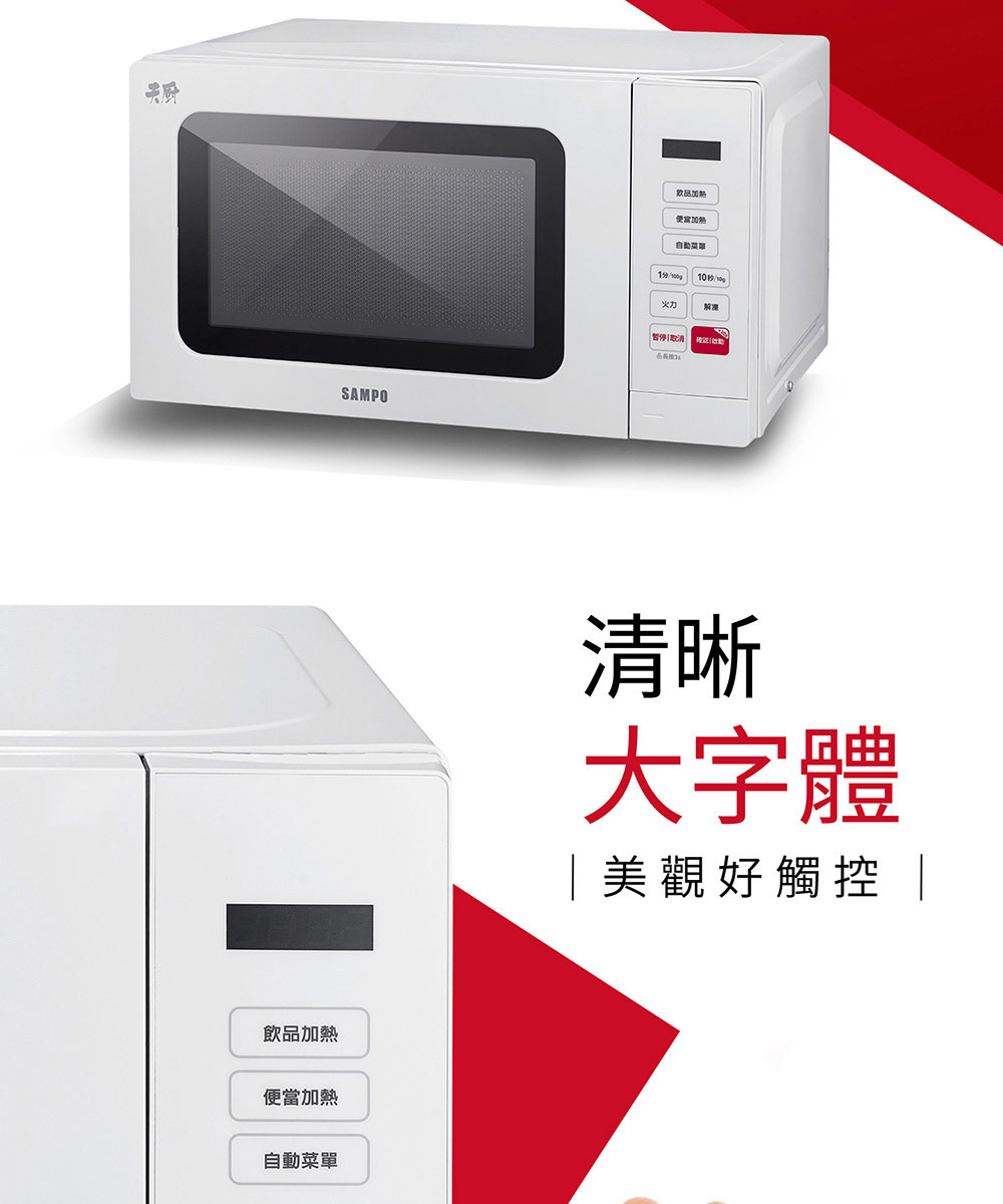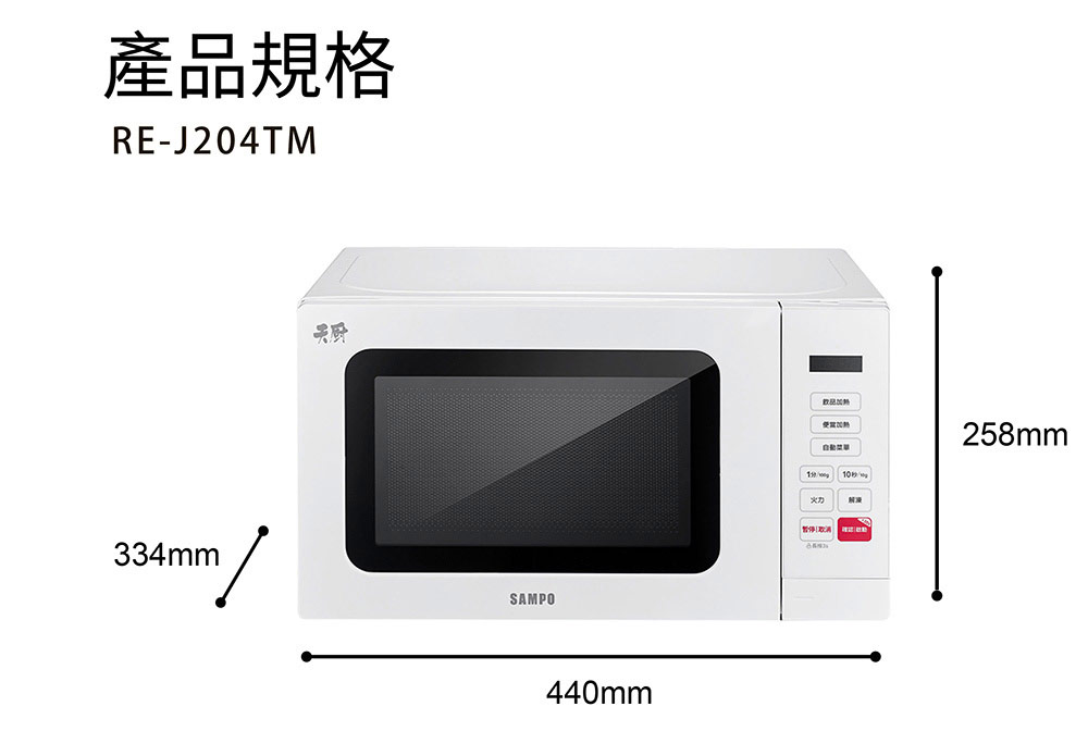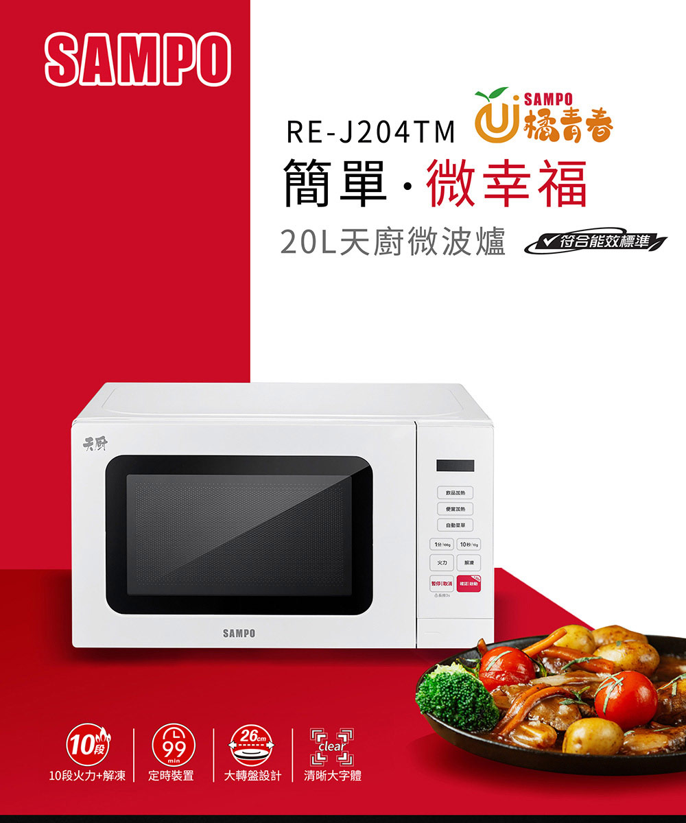 SAMPO 聲寶 20L 轉盤式微電腦微波爐 RE-J204TM -