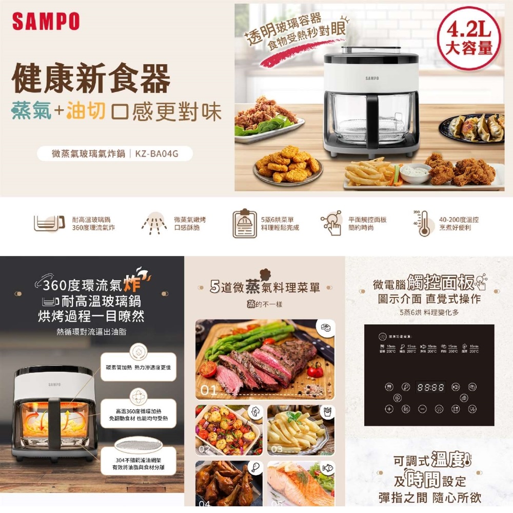 SAMPO 聲寶4.2L 微蒸氣 玻璃 氣炸鍋 KZ-BA04G -