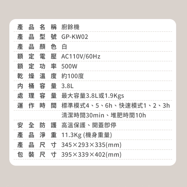 G-PLUS 3.8L 家用廚餘乾燥機 GP-KW02