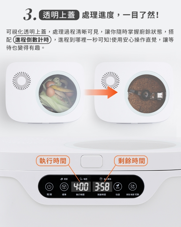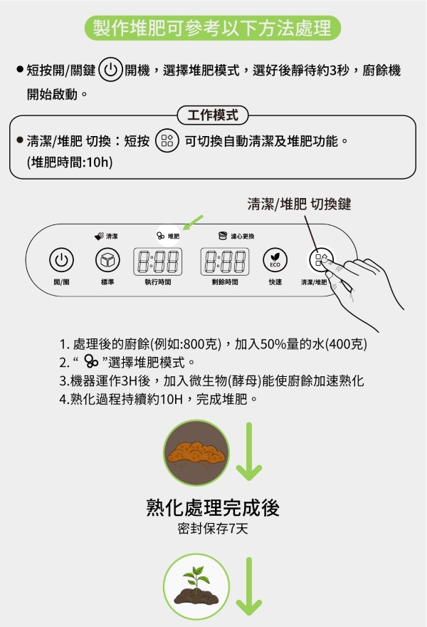 三段智慧模式、標準、快速、堆肥