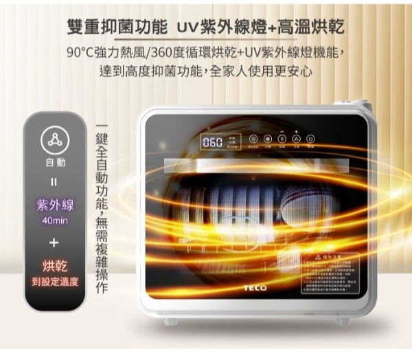 TECO 東元 40L 智能UV抑菌熱旋雙層烘碗機 XYFYE040B