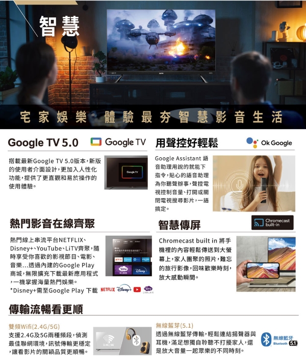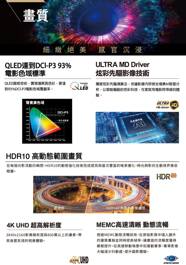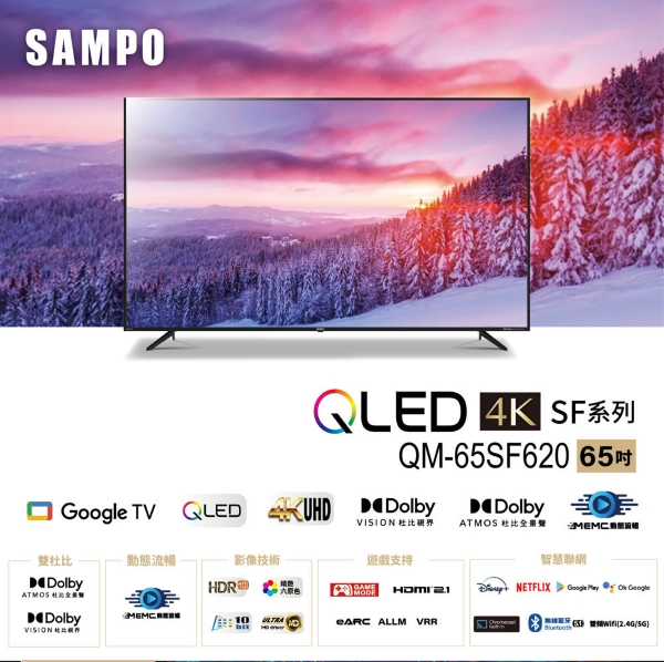 SAMPO 聲寶 65吋 4K聯網UHD Smart LED智慧顯示器 QM-65SF620