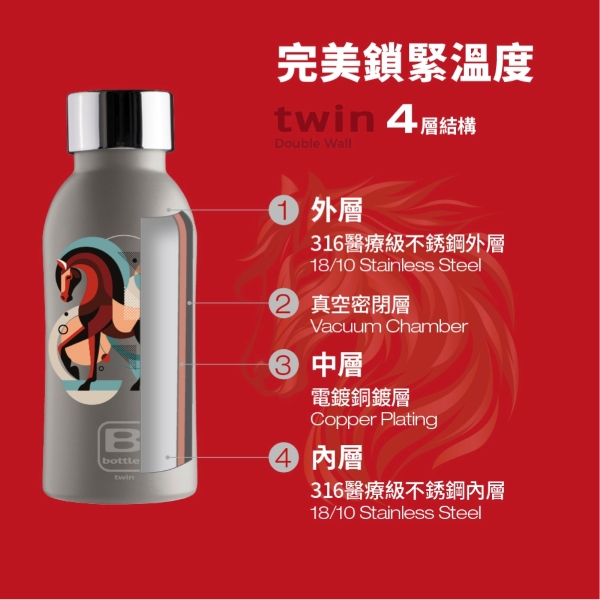 BUGATTI 布加迪 350ml 幾何駿灰影保溫瓶 BBT-CC350IN-PH01 -