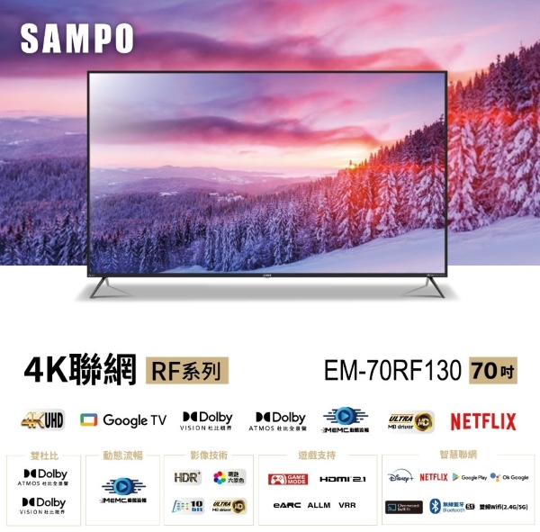 SAMPO 聲寶 70吋 4K UHD Smart LED 聯網液晶顯示器 EM-70RF130