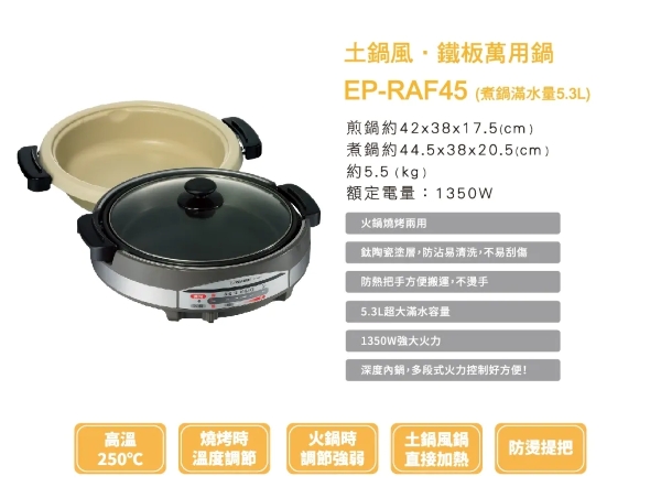 ZOJIRUSHI 象印 鐵板萬用鍋 EP-RAF45 -