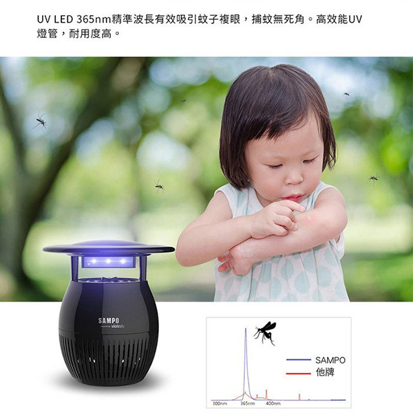 強效UV-LED有效誘蚊,Violeds世界級專利技術,精準365nm波長吸引蚊蟲