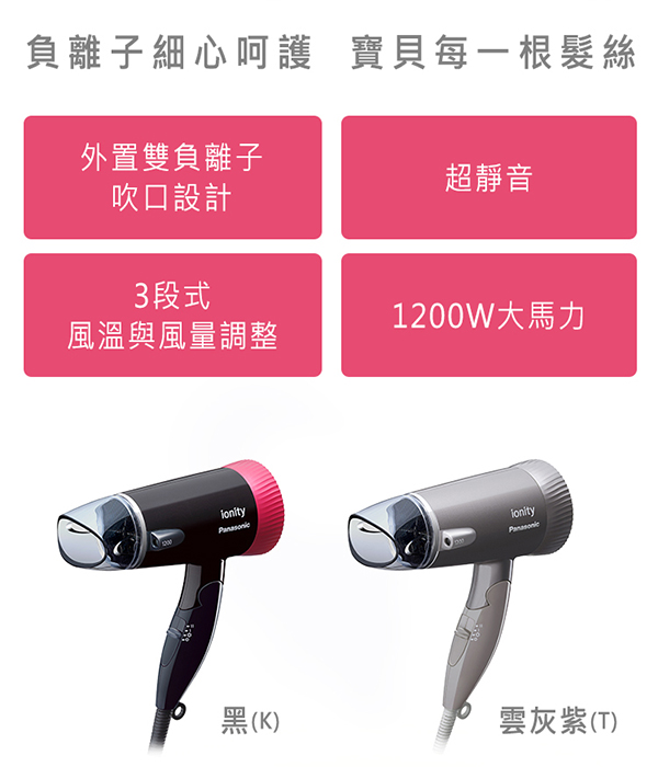 Panasonic 國際牌負離子3段溫控折疊式吹風機EH-NE43