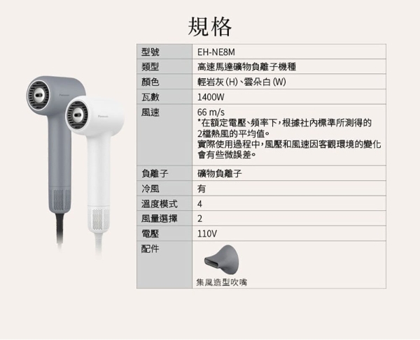 Panasonic 國際牌 負離子溫控高速馬達吹風機 EH-NE8M