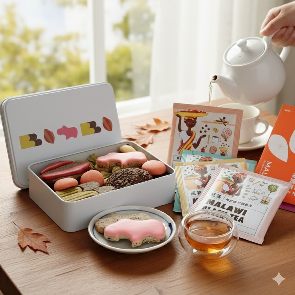 馬拉威精品濾掛咖啡 x 馬拉威三角立體茶包 x 鐵盒餅乾
