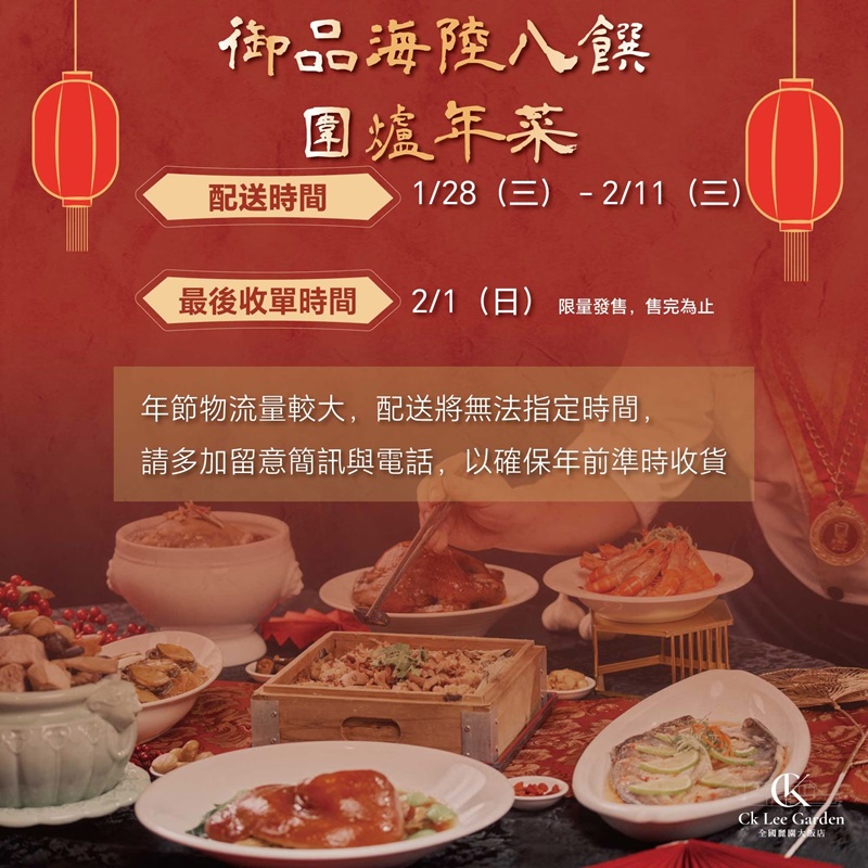 全國麗園大飯店【御品海陸八饌】2026年冷凍年菜|宴席級年菜饗宴|限時限量