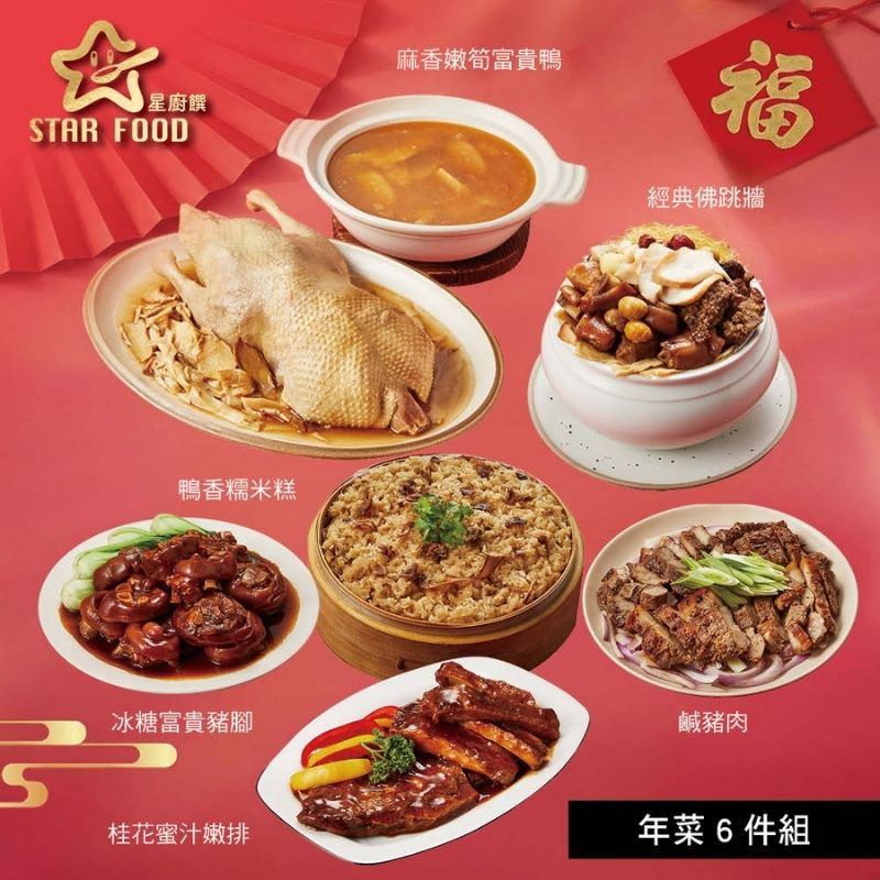 【星廚饌】年菜6件組(富貴鴨+佛跳牆+糯米糕+豬腳+嫩排+鹹豬肉)