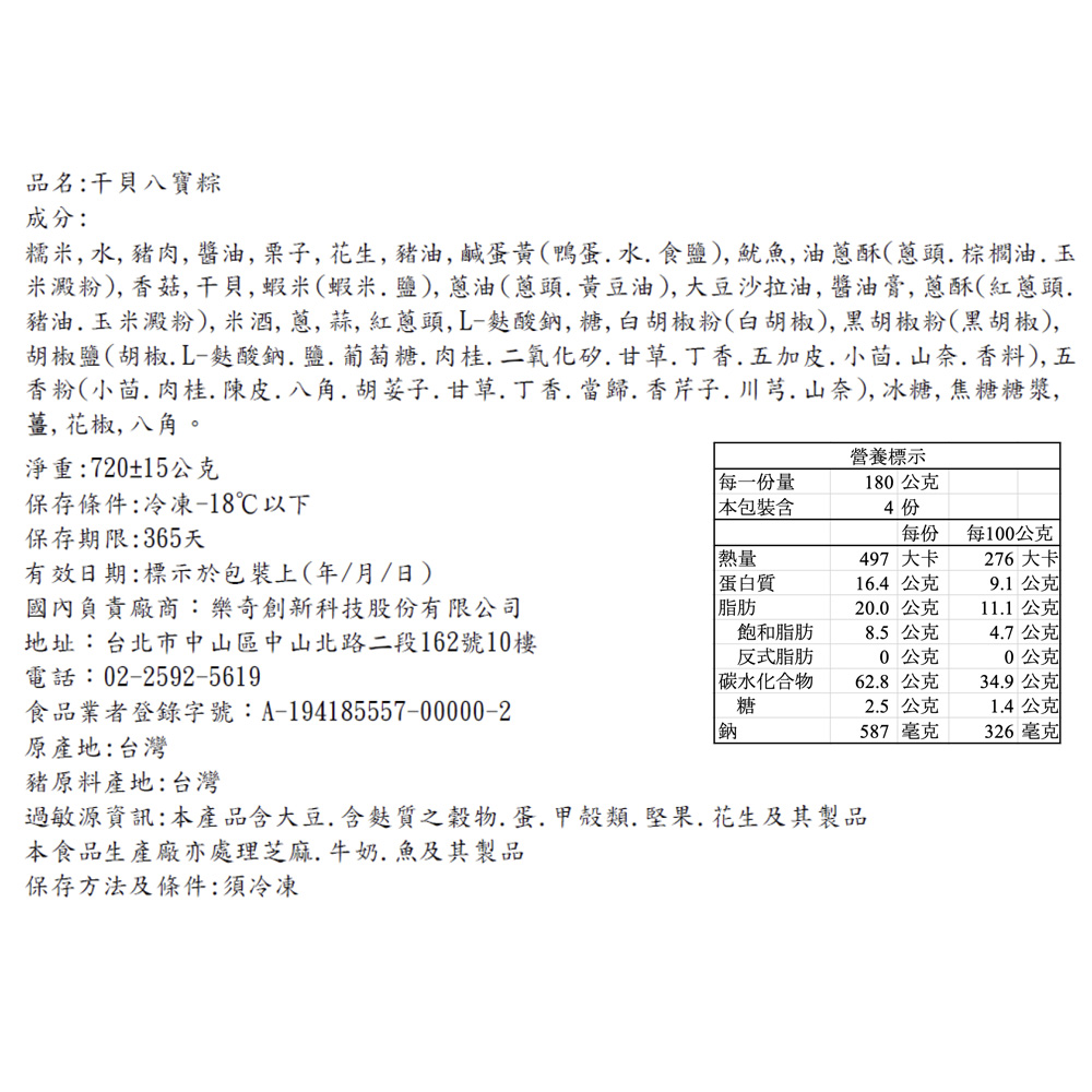 【台北晶華酒店】干貝八寶粽禮盒(4入)