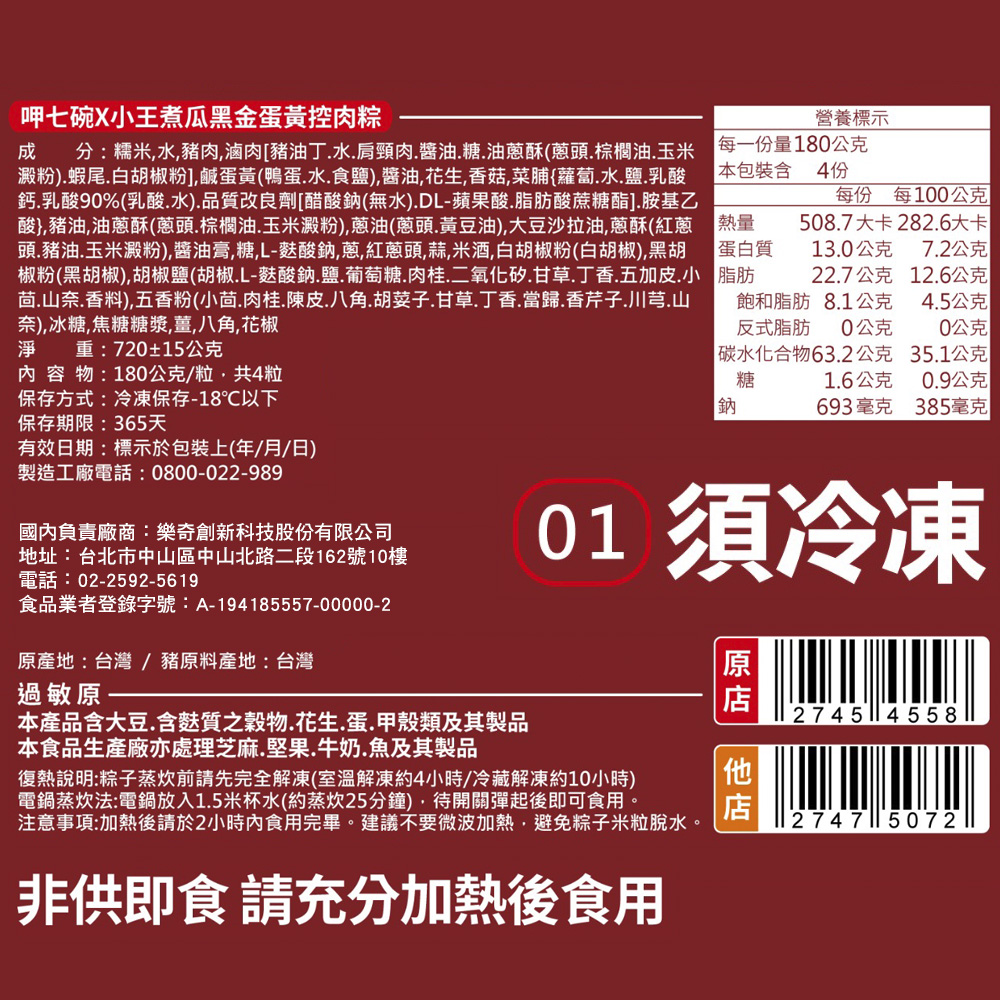【呷七碗X小王煮瓜】黑金蛋黃控肉粽(4入/袋)