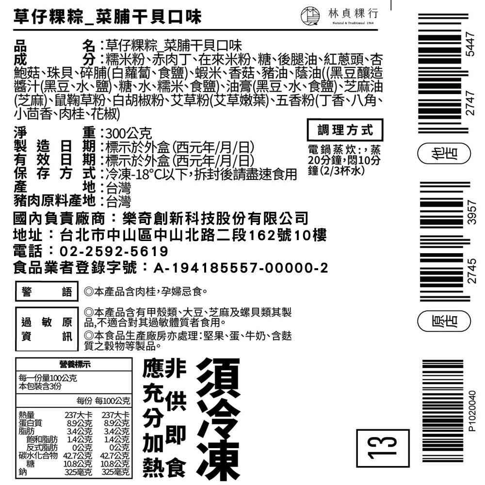 【林貞粿行】草仔粿粽禮盒 菜脯干貝口味(3入)