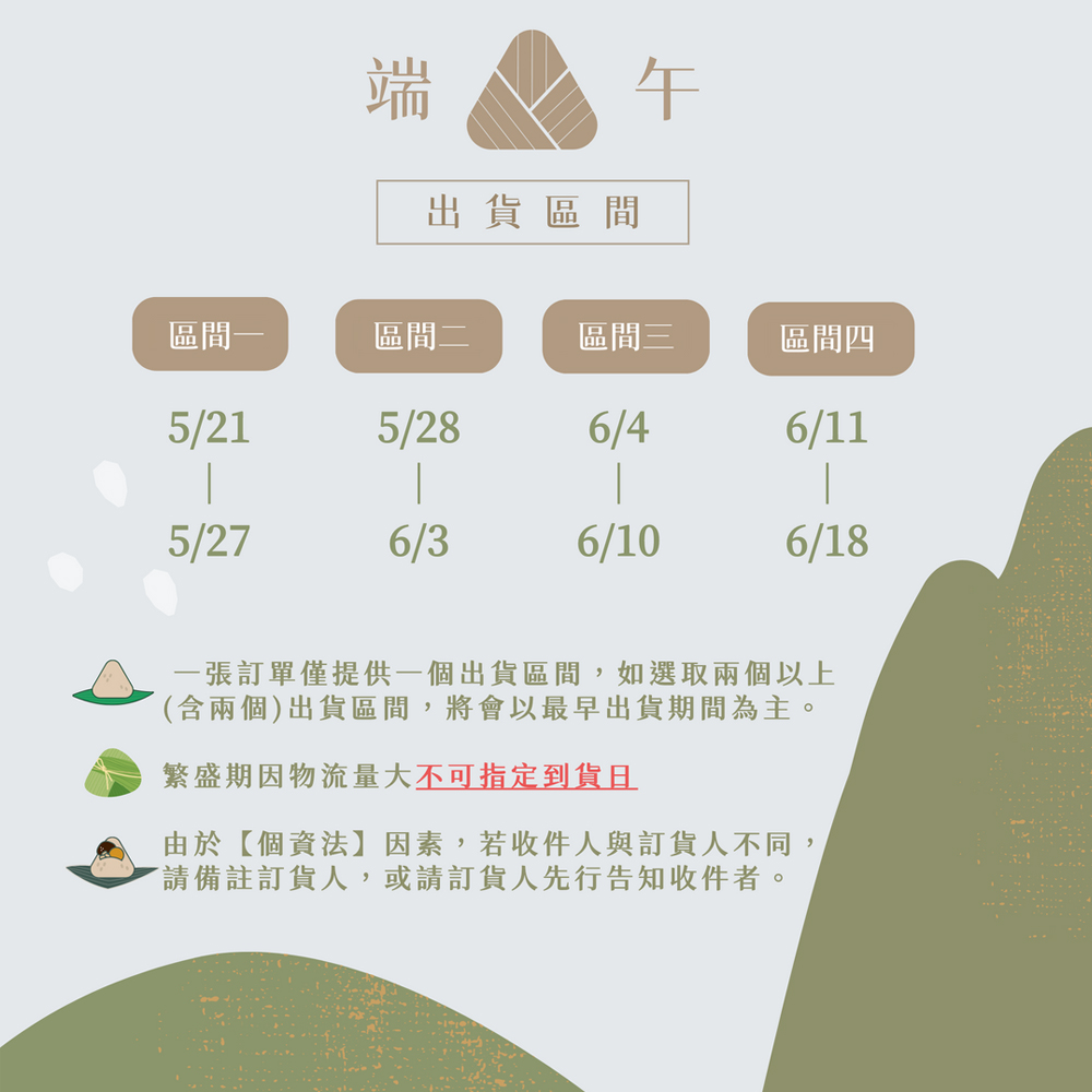 ※端午前夕因宅配繁盛期物流量大,恕無法指定到貨日期