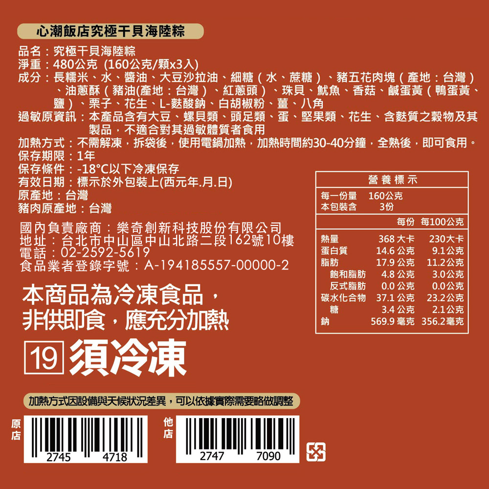 【心潮飯店】究極干貝海陸粽(3入)