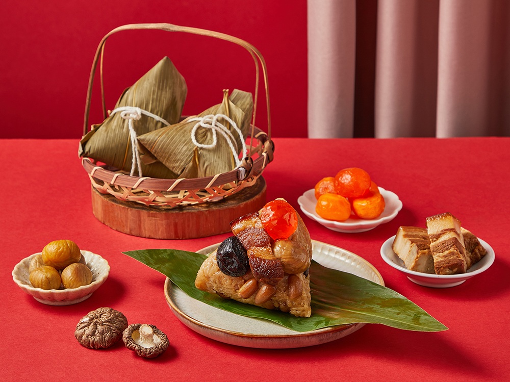 嚴選糯米與台灣豬五花肉,佐紹興酒與醬香慢火入味,搭配鹹蛋黃、香菇、栗子與花生,層層堆疊鹹香濃郁風味,呈現經典東坡肉粽的醇厚滋味。