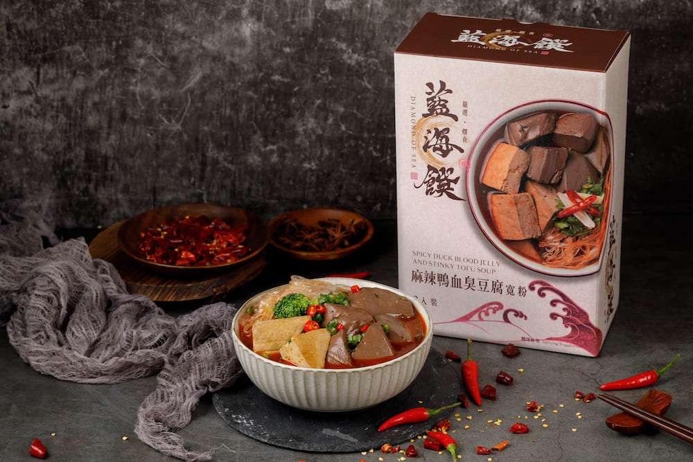 採用雞骨與正四川大紅袍、重慶青花椒以及秘制數十種漢方辛香料中藥配方熬煮而成的麻辣湯底,香醇濃郁,獨家恆溫熟成滷製技術,使鴨血Q彈滑嫩、飽滿多汁、香辣入味,加上豆腐,採用高溫高壓滅菌技術 絕無防腐劑的常溫調理包,方便料理的好滋味,一個人在家也能簡單地享受美味的麻辣鴨血。