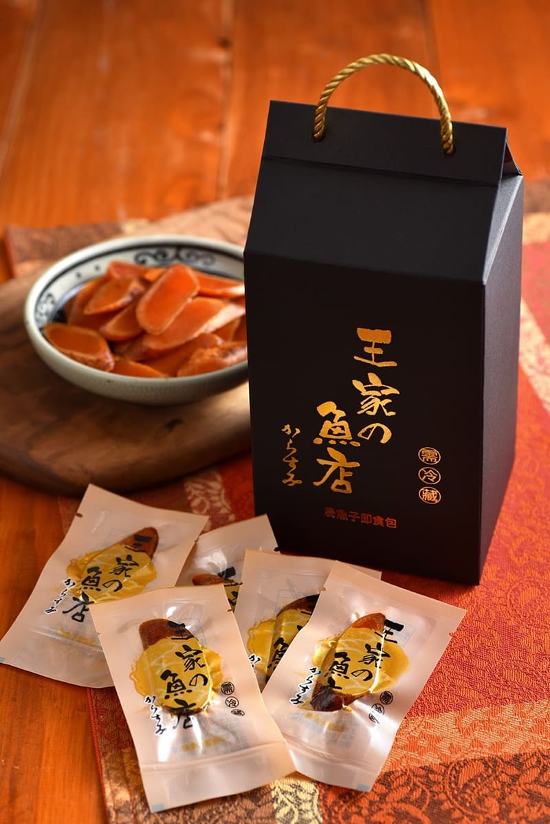 選用上等烏魚子,經過低鹽低納及獨家製作秘方