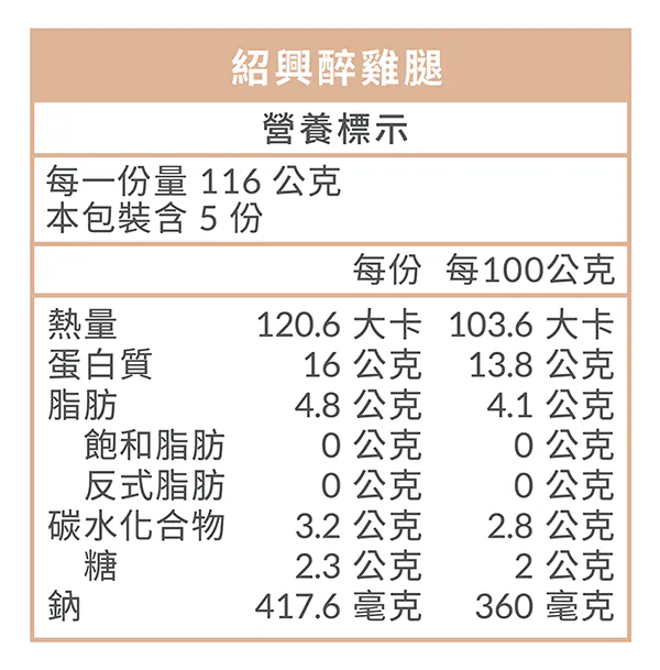 內容物:雞腿、鹽、糖、紹興酒、當歸、黃耆、蔘鬚、川芎、枸杞