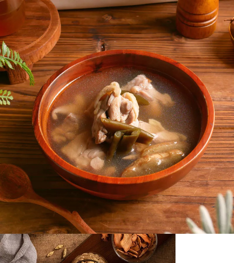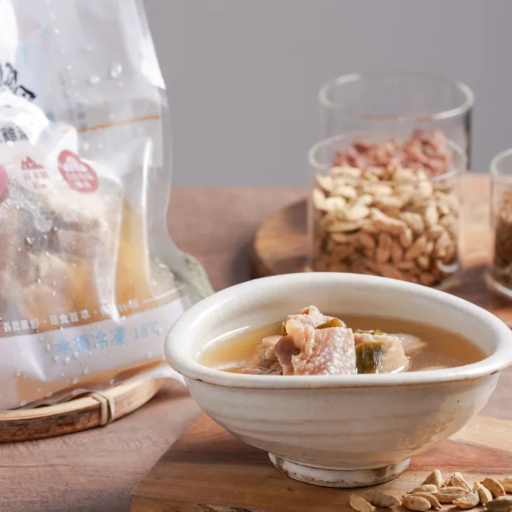 內容物:雞高湯(水、雞骨、豬骨)、去骨雞腿丁、剝皮辣椒、薑、蔥、糖、鹽