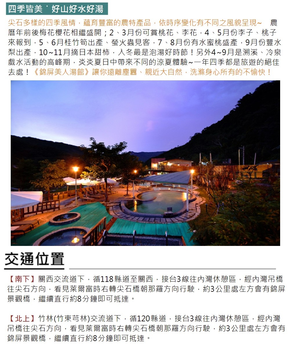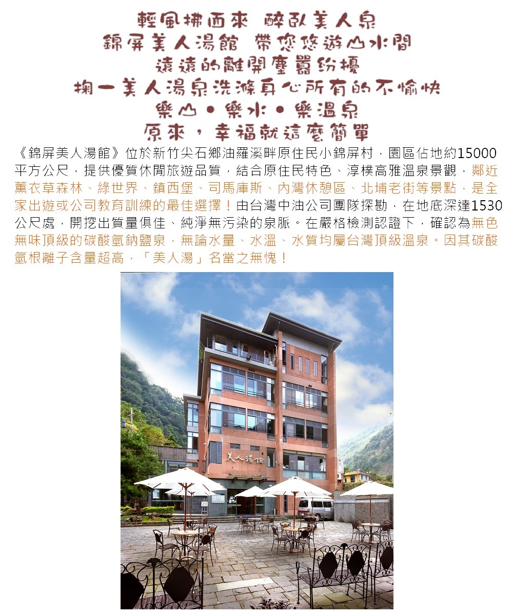 【新竹尖石】錦屏美人湯館-2人觀景湯屋泡湯券