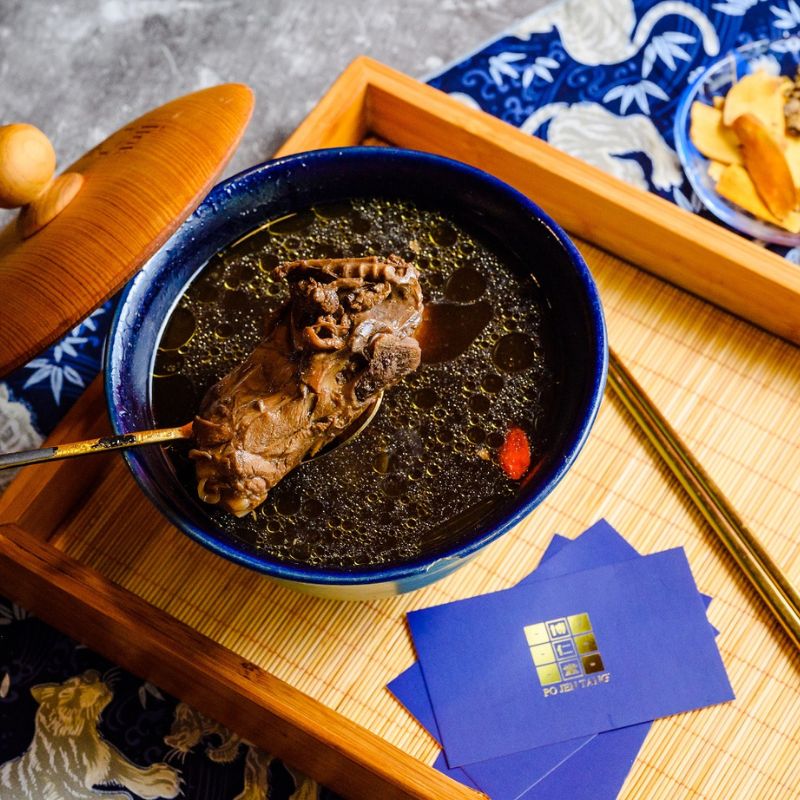 內容物雞肉加上燉煮藥材四物湯當歸。川芎。熟地。炒白芍等