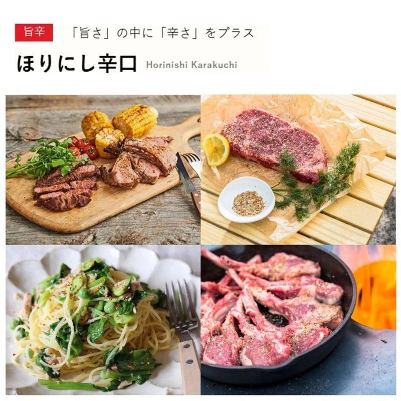 「HORINISHI 萬能調味粉(ほりにし)」,是由和歌山縣的知名戶外用品店「Orange」於2019年所推出的萬能辣味調味粉。熱愛戶外活動的店經理堀西晃弘以露營體驗為靈感,希望能研發出一款適合日本人口味、適合在露營時搭配各種下酒料理的調味產品