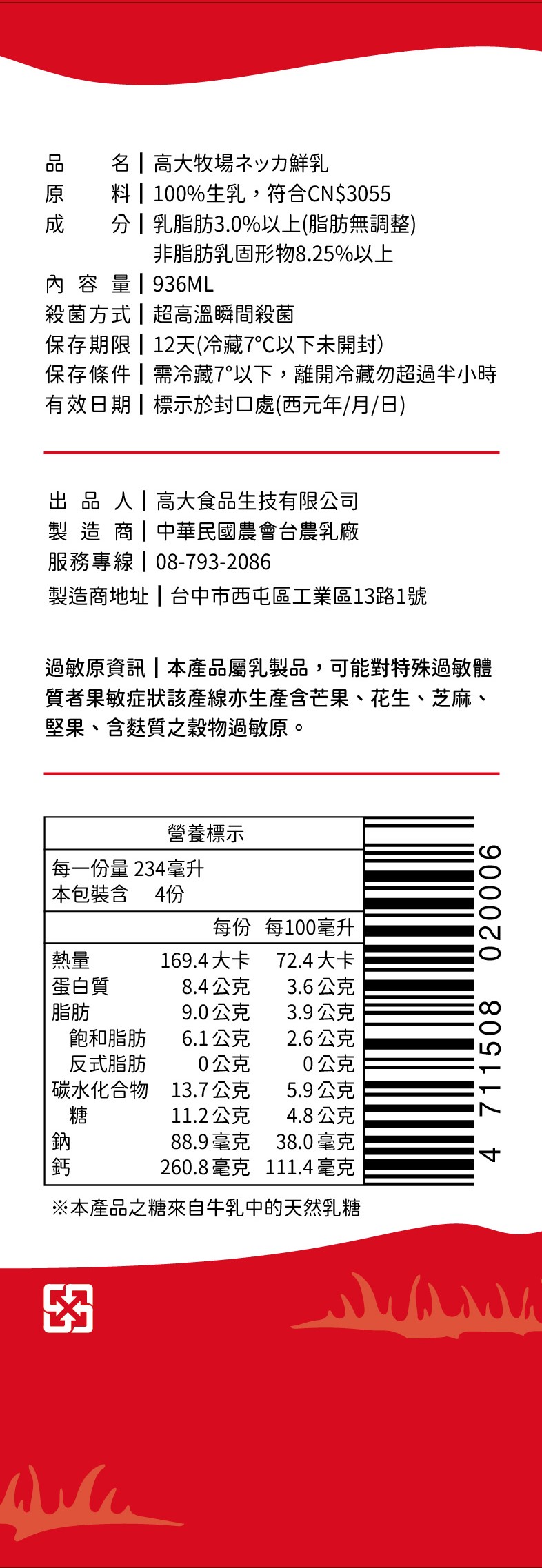 高大牧場 營養健康組-鮮奶x2+優格x2 (含運)
