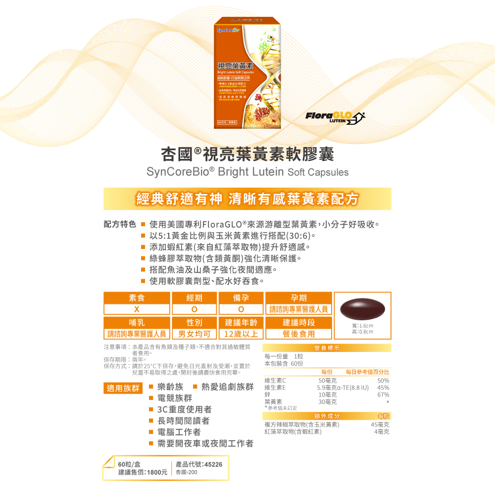 【杏輝醫藥集團】杏國視亮葉黃素軟膠囊 (60顆/盒)