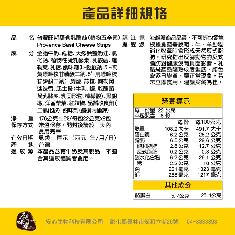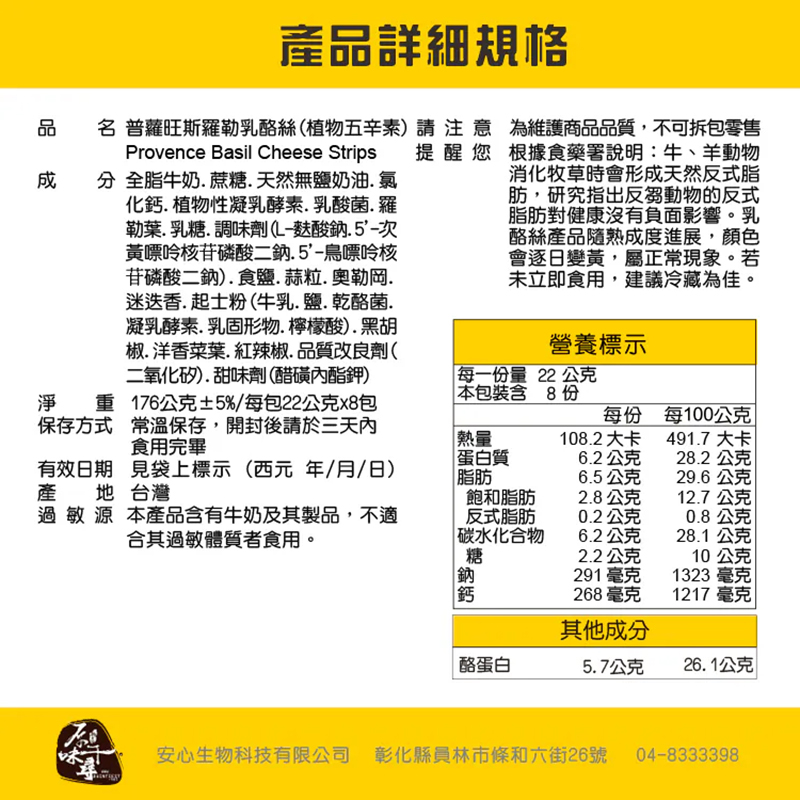 原味千尋 普蘿旺斯羅勒乳酪絲(8入/淘氣包/植物五辛素)
