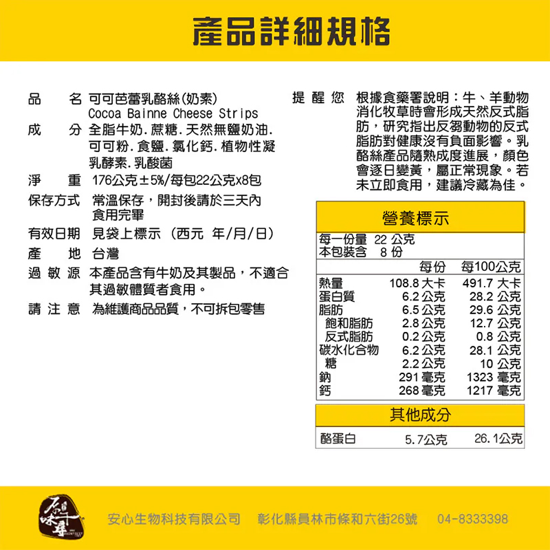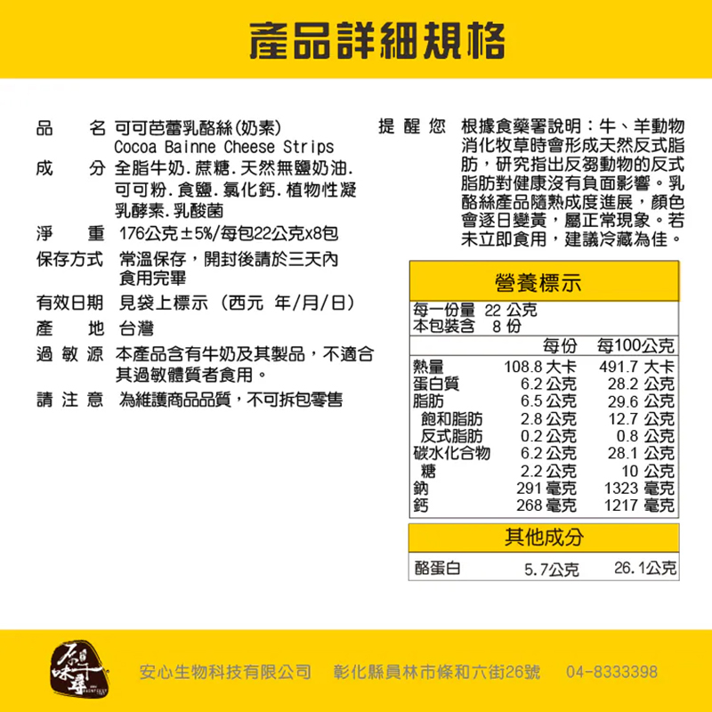 原味千尋 可可芭蕾乳酪絲(8入/淘氣包/奶素)