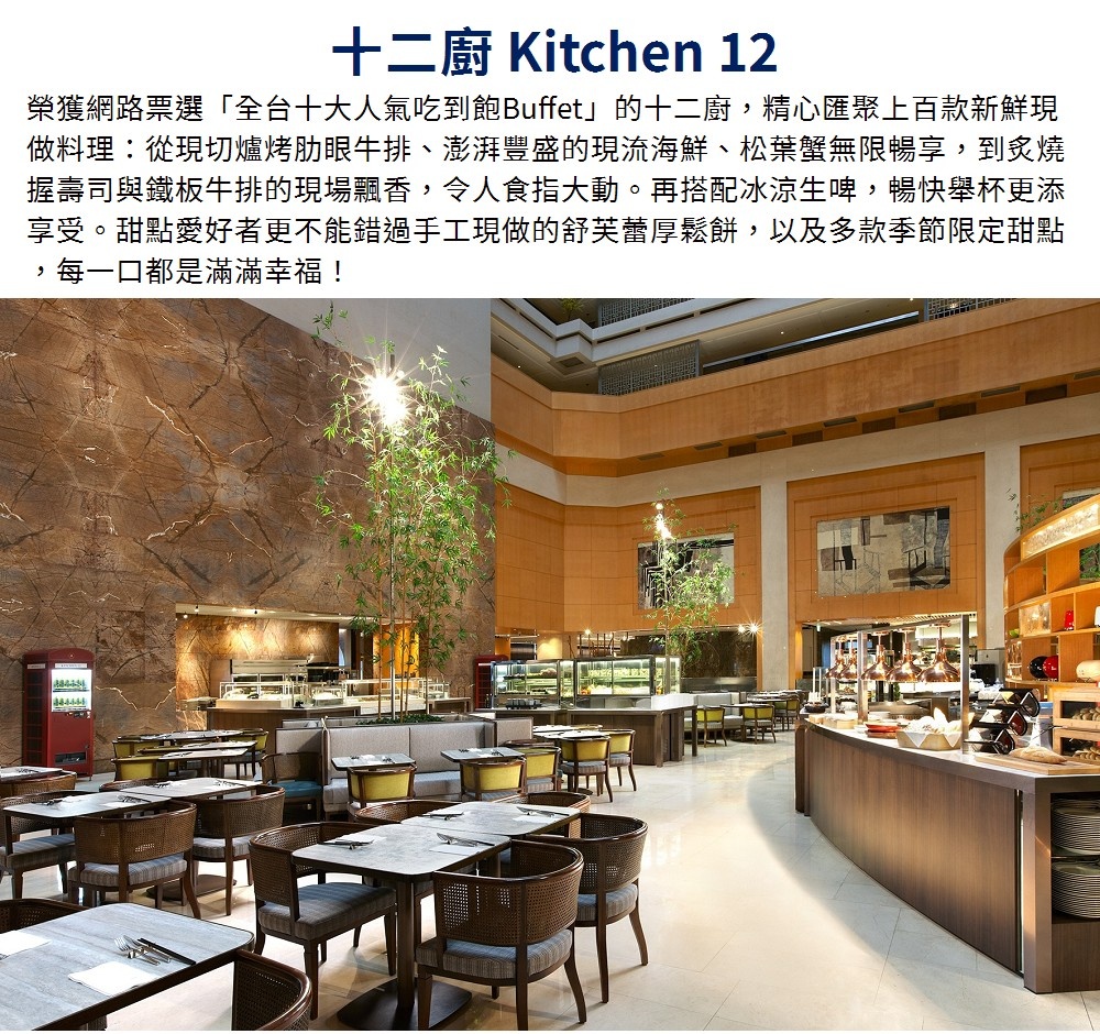 【台北】喜來登十二廚平日自助午餐單人券2025(2張組)