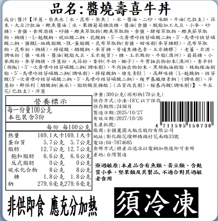 過敏原:本產品含有魚類、黃豆類、含麩質小麥、堅果類及其製品,不適合對其過敏者食用。