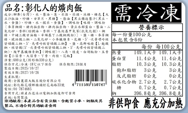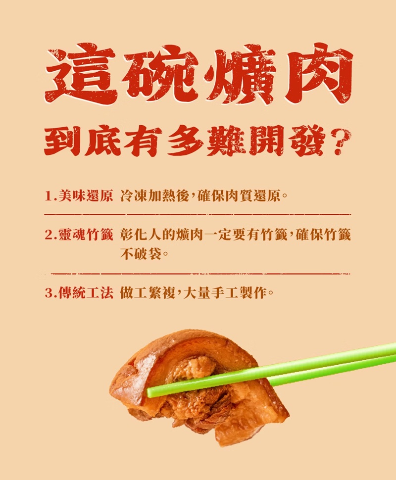 ※ 內容物提醒: 本商品 不含白飯 , 內含約「4 塊 爌肉 」 。欲享完整爌肉飯請另外準備米飯。