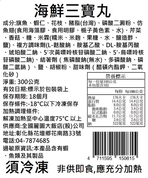 過敏原:本產品含有蝦、魚類及其製品,不適合其過敏體質者食用。