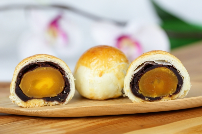 牛肉蛋黃酥:嚴選頂級鹹蛋黃及上選牛肉鬆,黃金口感絕佳搭配,吃1口2種享受,香氣飽滿沒有腥味。