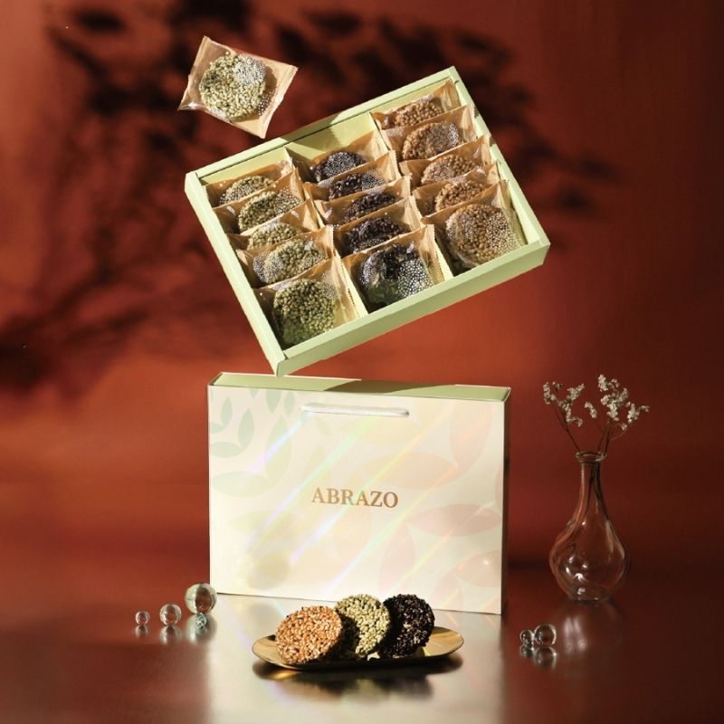 以濁水溪黑米、坪林文山包種茶與台灣手工黑糖打造三款風味米香點心。